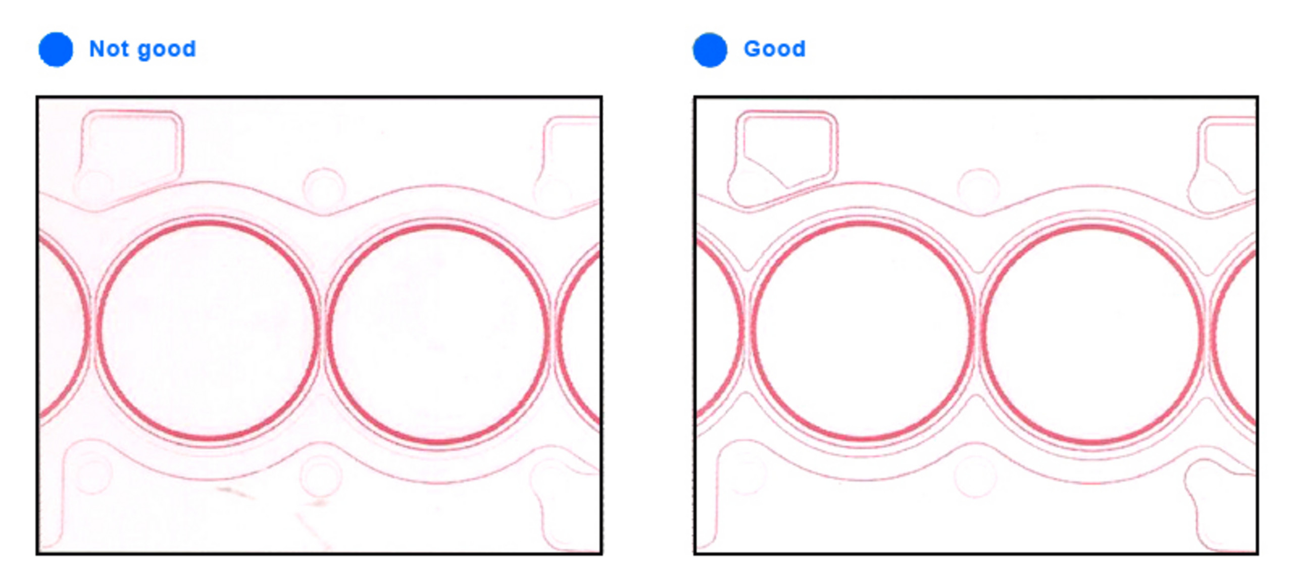 The Prescale films are produced as a 1 – and/or 2-layer film. The 2-layer types have micro-capsules applied on one foil and on the other film is the developer layer. To measure the matte layer side of the film are facing each other - the shiny side of the polyester film has to show to the outside. Each of the two films has a thickness of about 90 microns and can be cut with scissors to the desired size.