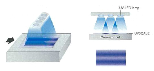 Oft geht es nicht nur darum die absolute Bestrahlung zu kennen sondern vor allem die Gleichmäßigkeit in der Fläche sicherzustellen. Dies ist vor allem dann von Interessen, wenn die UV-Strahlung durch zahlreiche Lampen aufgebracht wird. Schwachstellen sind nun sofort zu erkennen.
